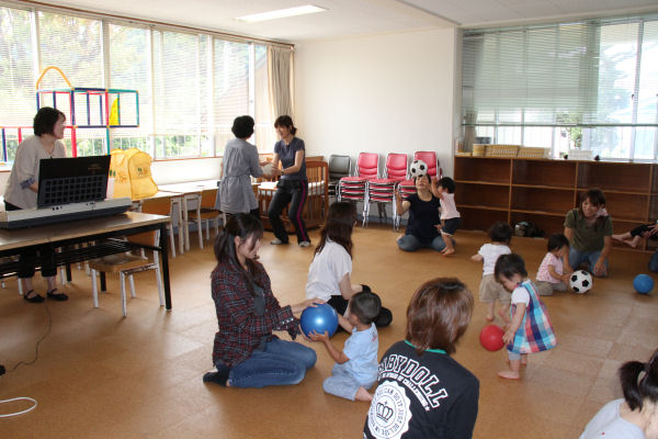 - 児童館では、すくすく広場「リトミック教室」が行われました。 リトミックとはリズムに合わせて体を動かす音遊びです。 参加者の方々も親子で一緒にリトミックを楽しんでいる様子でした。
