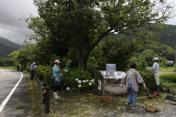 - 6月の第3日曜日である今日、町内では「花の日町内一斉清掃」が行われました。 毎月第3日曜日が「花の日」とされていますが、特に6月、9月、1月については、町ぐるみで清掃作業を行っています。