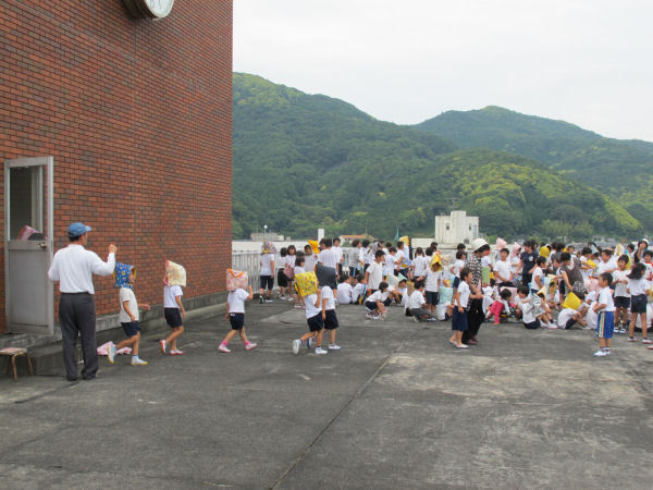 - 松崎小学校では、避難訓練と保護者への引き渡し訓練が行われました。