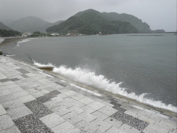 - 台風接近の影響により町内の海岸では、白波が立っていました。