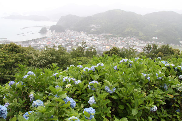 - 世界の中心で、愛をさけぶのロケ地となった牛原山のアジサイの丘では、青色に色付いたアジサイが見ごろを迎えています。