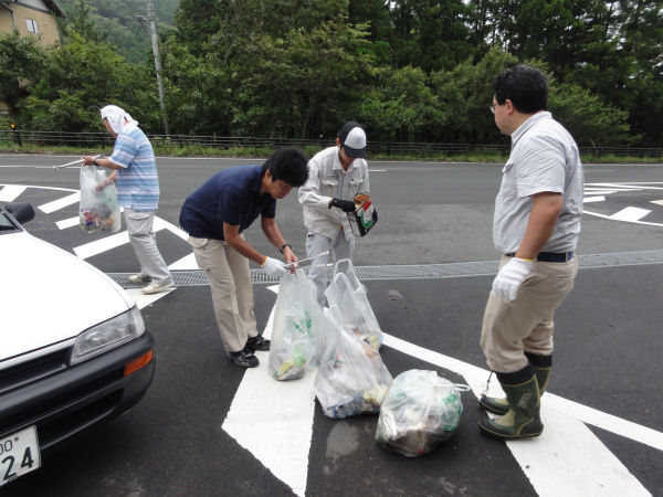- 本日、松崎町職員組合では、地域貢献の一環として、組合員約50人が参加し、国道や県道の清掃作業を行いました。