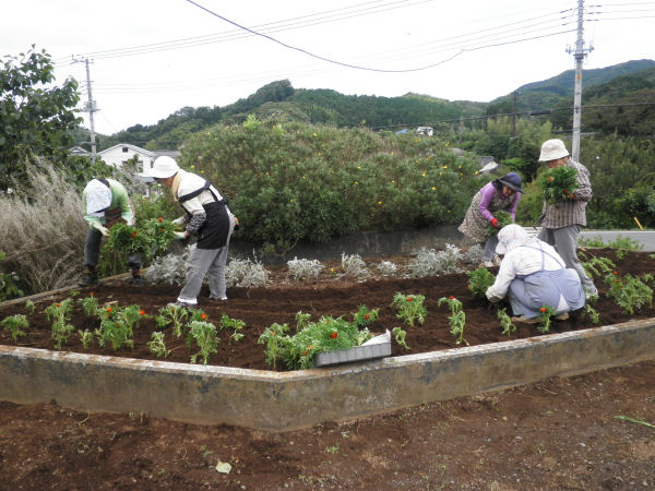 - 昨日の話題ですが、松崎町花の会の皆様が、町内花壇の植え替え作業を行いました。