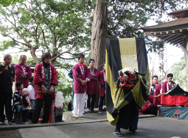 - 秋まつりが始まりました。 町内各所では早朝から獅子舞が区内を回っています。