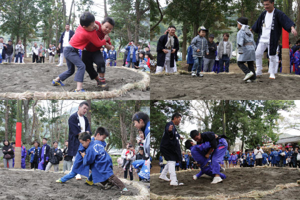 - 伊那上神社では、伏青会(伏倉区)・共盟社(宮内区)による奉納相撲が行われました。奉納相撲に続き、子ども相撲も行われ、多くの子どもたちが参加していました。