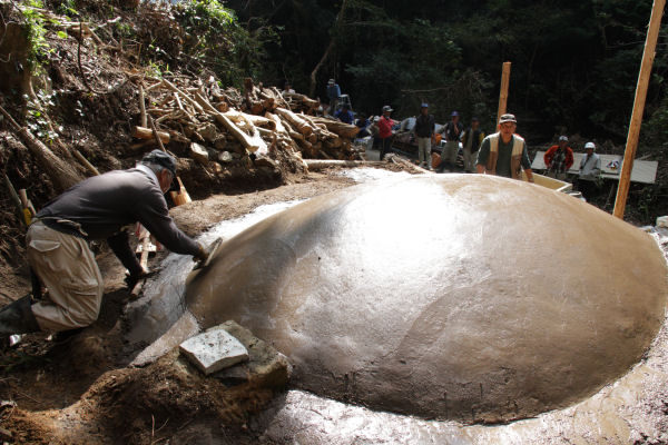 - 八木山炭窯復活プロジェクトでは、「天井打ち」という炭窯にドーム型天井を作る作業が行われました。