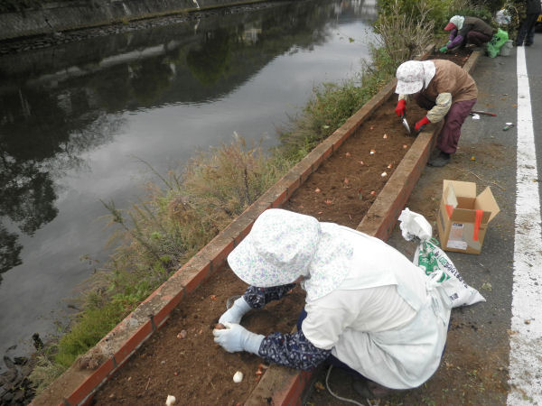 - 町内の花壇では、チューリップの球根植えが行われました。