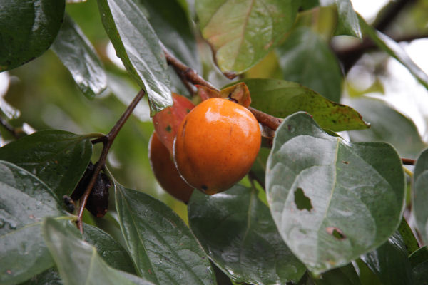 - 畑や民家のわきに、甘柿、渋柿が実っています。 鮮やかなオレンジ色が、秋の空にきれいに映えています。
