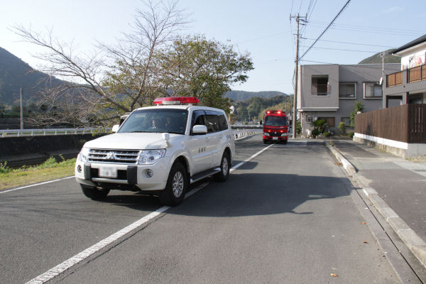- 今日から15日まで、秋の火災予防運動が行われます。初日の今日は、松崎町、西伊豆町、広域消防本部が合同で広報パレードを行いました。