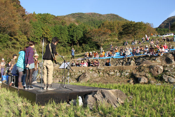 - 石部棚田では「石部音楽博覧会」という音楽イベントが開催されました。出演者の歌声や演奏が棚田に響き渡り、来場者は棚田でのコンサートを楽しみました。