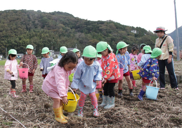 - 昨日、那賀の大規模花畑では、松崎幼稚園中川園の園児が花の種まきを行いました。