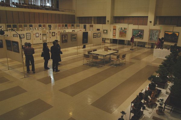 - 明日から環境改善センターを会場に、文化協会主催の芸術祭が開催されます。 今日は午前中から作品展示や照明などの準備が行われていました。
