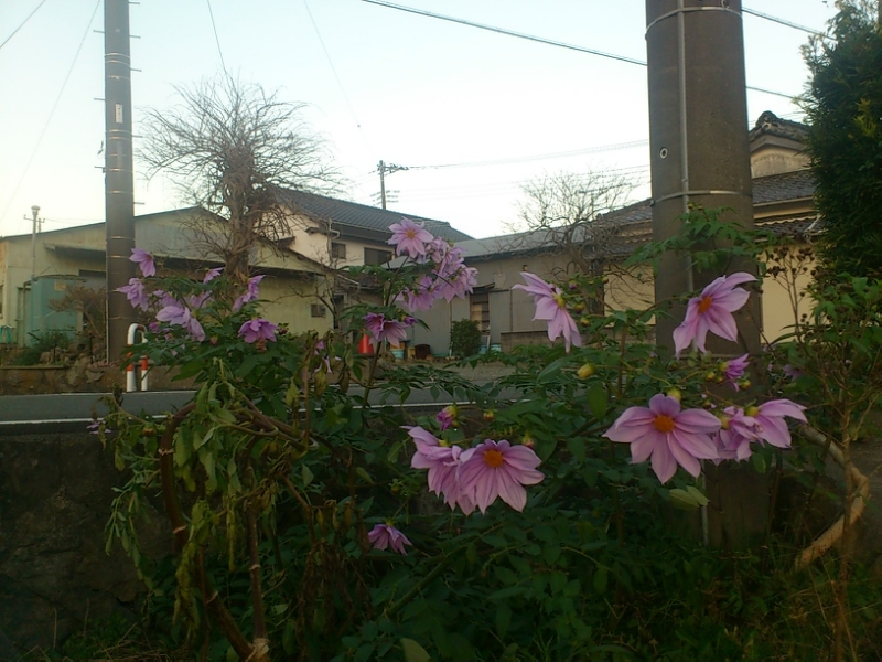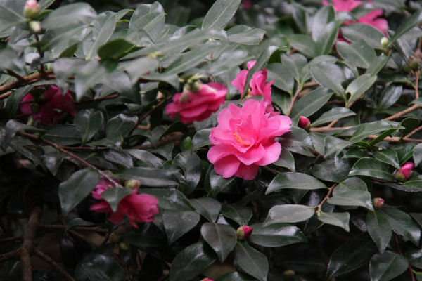 - 町内では、カンツバキの花がきれいに咲いています。