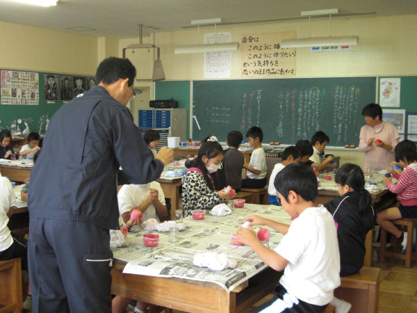 - 松崎小学校3年生と1組の児童が、授業で光る泥団子を作りました。今日は、最後の工程で、砂漆喰、色漆喰を塗り、最後に瓶で磨くと、ピカピカの泥だんごが完成しました。