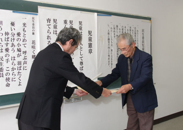 - 民生委員児童委員として、社会福祉の増進に貢献した土屋清武さんに、厚生労働大臣などから贈られた感謝状が渡されました。