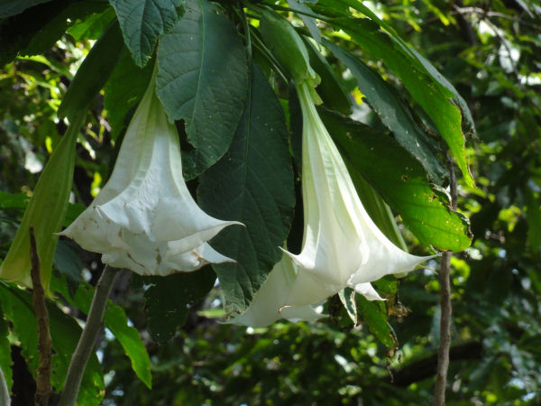 - 庭先などで、別名でチョウセンアサガオともいわれる、ダツラの花が咲いています。