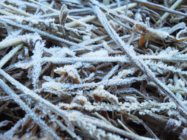- 昨夜から気温が下がり、冷え込んだため、今朝、田んぼでは、霜が見られました。