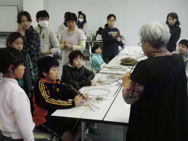 - 環境センターでは、棚田百笑くらぶの活動として、あけびづるを使った「クリスマスベル作り」が行われました。先生に教えていただきながらつるを編み、個性豊かな作品が出来上がりました。