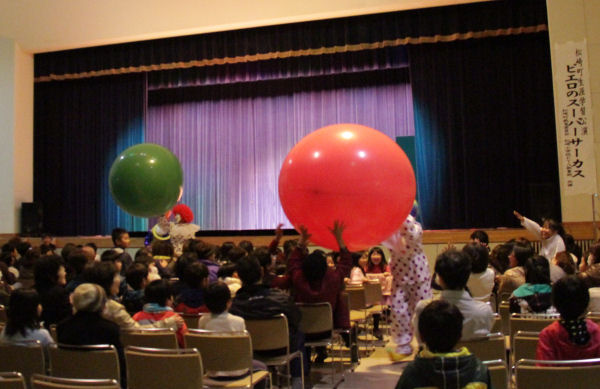 - 環境センター文化ホールでは、教育委員会と松崎小学校PTA教養部の共催による、生涯学習公演「ピエロのスーパーサーカス」が行われました。