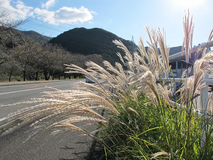- ススキがきれいに見られる時期となりました。 風にそよぎながら、河川敷や道端で日の光を浴びキラキラ光っています。