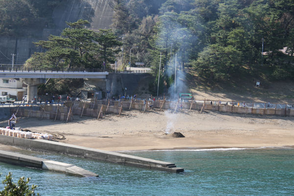- 雲見海岸では、冬の季節に吹く西風に備え、砂の飛散防止のための、浜囲いの設置作業が行われました。
