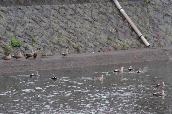- 今日は雨が降り続き、あいにくの天候です。午前中までは、川が増水するほどの雨でもなく、那賀川の流れも穏やかだったため、カモが水面をゆったりと泳いでいました。