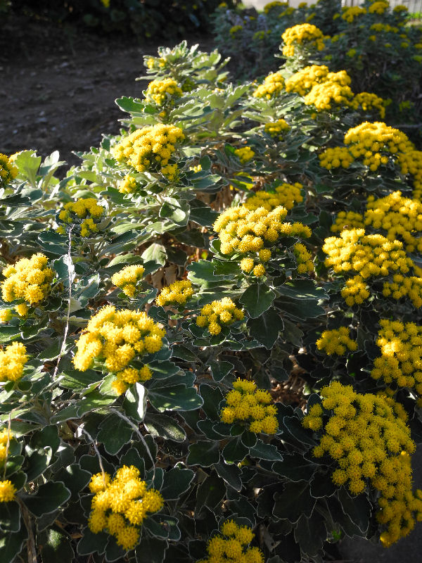 - 海岸線では、イソギクの黄色い花が咲いています。