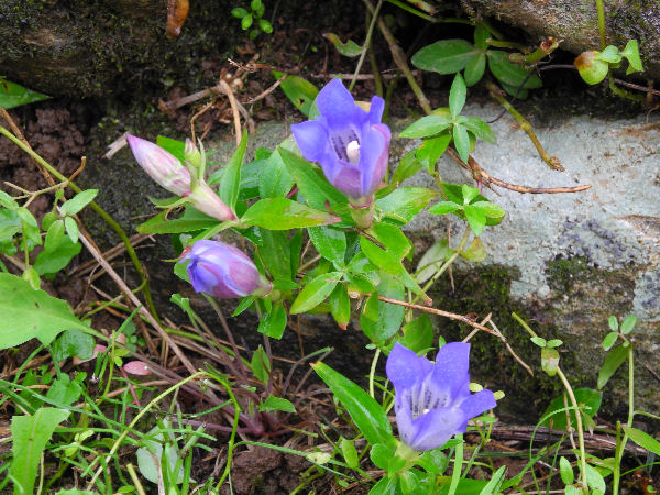 - 石部棚田の畦に、リンドウの花がひっそりと咲いていました。