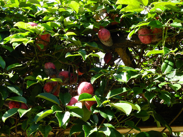 - 道の駅花の三聖苑では、ムベの実が紫色に熟していました。