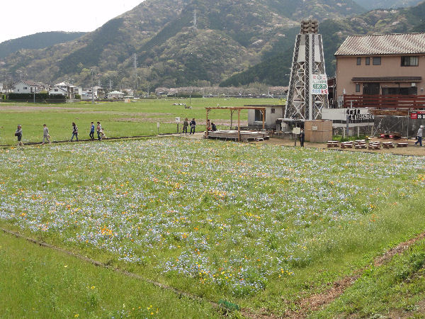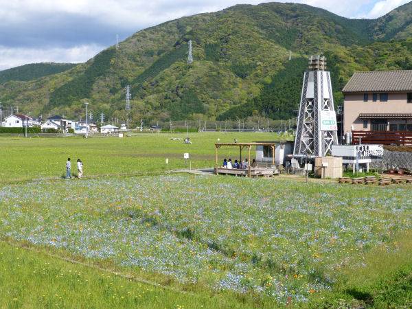 - 田んぼをつかった花畑には、るりからくさ、つましろひなぎく、カリフォルニアポピーなどが咲き、観光客の皆さんの目を楽しませています。