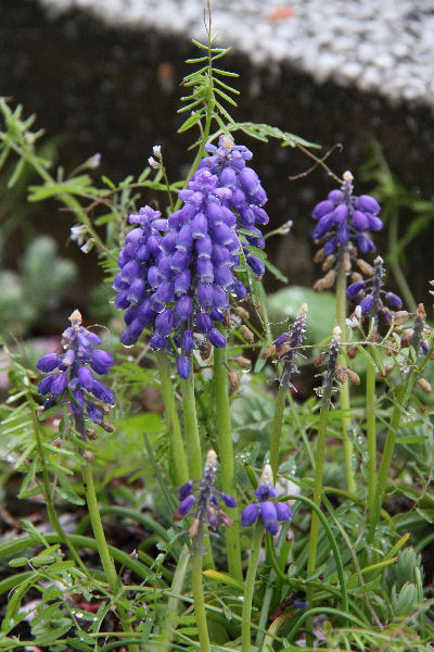 - 町内の花壇などで、青紫色のムスカリの花がきれいに咲いていました。