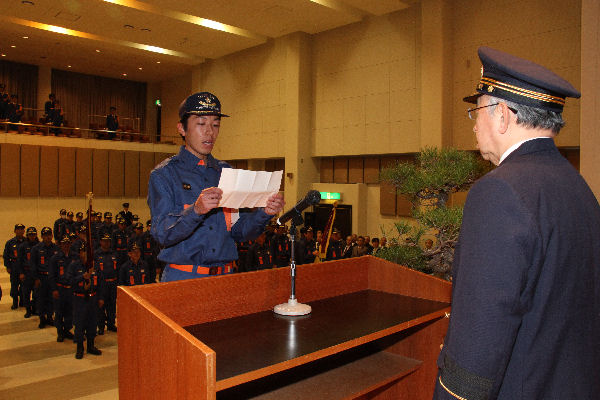 - 昨夜の話題ですが、環境センターでは、消防団入団式が行われ、辞令交付や新入団員による宣誓、表彰などが行われました。