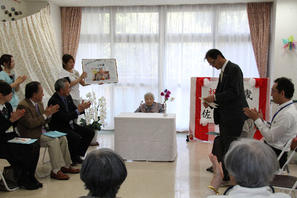 - 今日、100歳を迎えた佐藤てうさんが入所している施設を町長が訪問し、お祝いをしました。