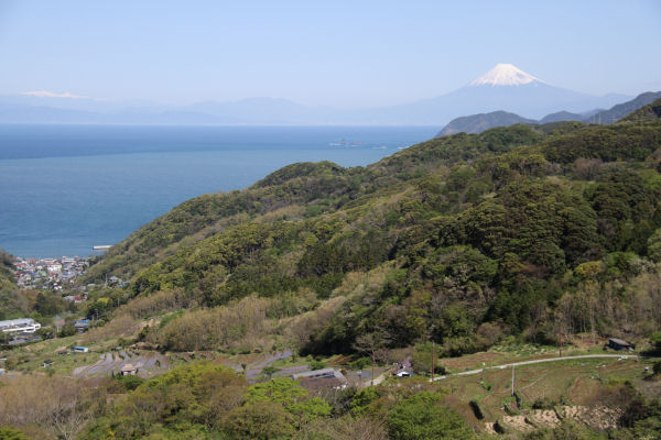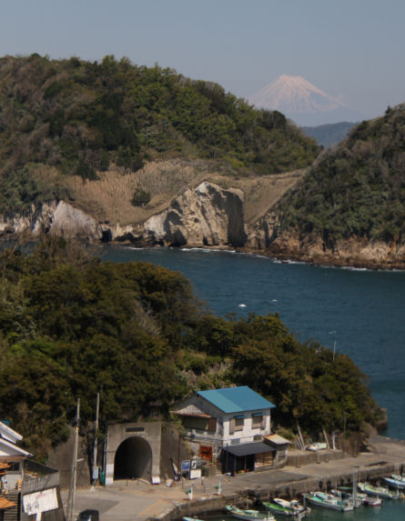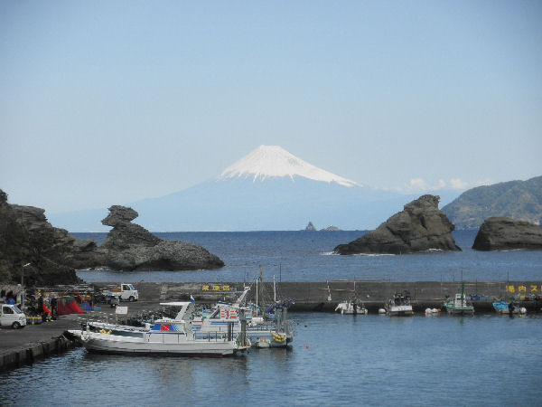 - 雲見海岸からの富士山の眺めです。今日は雪化粧をした部分から裾野まできれいに見ることができました。