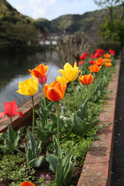 - 庭先や町内の花壇などでは、色とりどりのチューリップの花がきれいに咲いています。