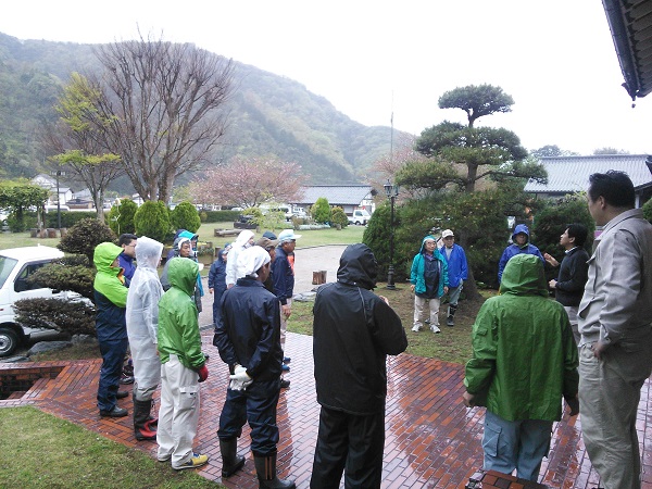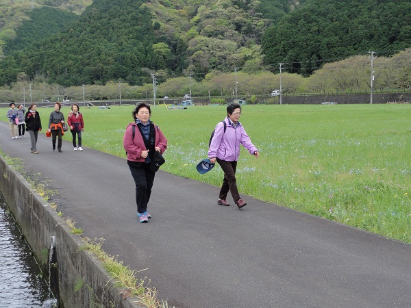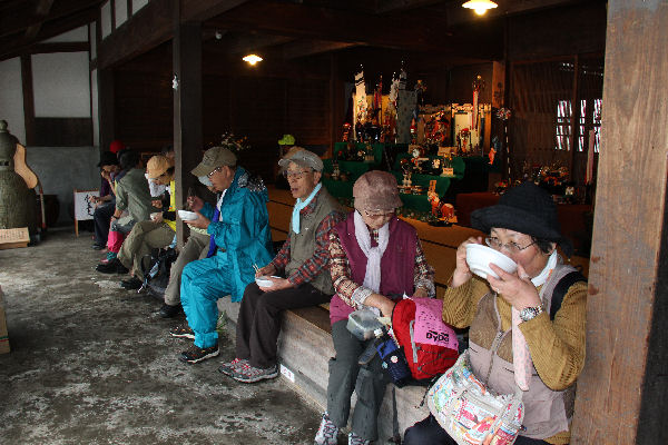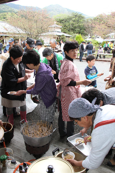 - 第14回伊豆松崎なまこ壁と桜のツーデーマーチの第1日目が開催されました。あいにくの天候でしたが371名が参加し、コース途中のおもてなし処「伊豆文邸」では、磯の香り豊かなお味噌汁が振る舞われました。