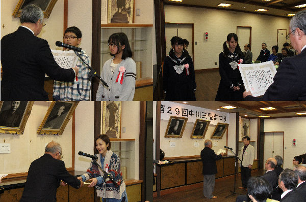 - 第29回中川三聖まつりが「道の駅」花の三聖苑で開催されました。 式典では、依田佐二平文化賞や伊豆松崎心に残る写真コンクールの表彰が行われました。