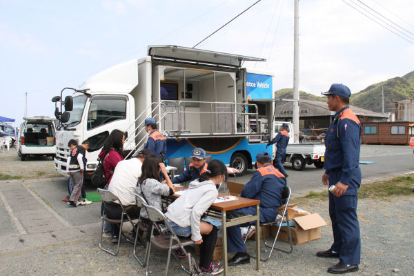 - 春のピカ市では、起震車体験のコーナーもあり、会場を訪れた方々が、起震車で地震の揺れを体験していました。