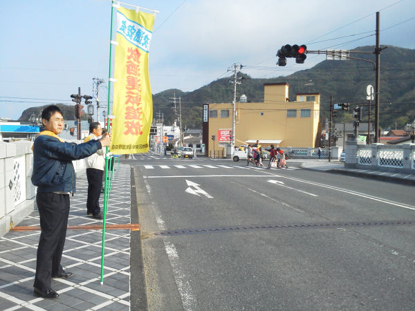 - 4月6日から15日まで、春の全国交通安全運動期間です。今朝は、町内各所で交通安全街頭キャンペーンが行われました。