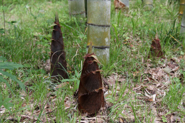 - 竹林で、タケノコが次々に顔を出していました。ご家庭でも、タケノコご飯や天ぷら、煮物などにし、今が旬のタケノコを堪能している方も多いのではないでしょうか。