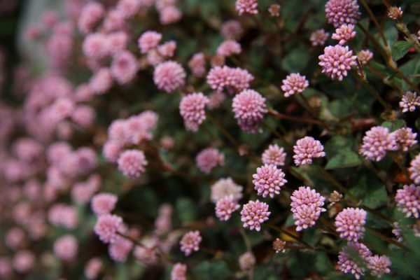 - 石垣や庭先などで、ヒメツルソバがピンク色の可愛らしい花を咲かせています。