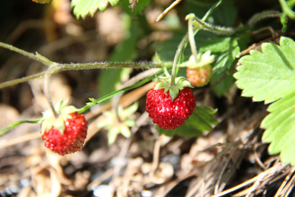 - ハーブ実証栽培事業の畑では、34種類植えたハーブの内の一つ「ワイルドストロベリー」が赤い実をつけていました。