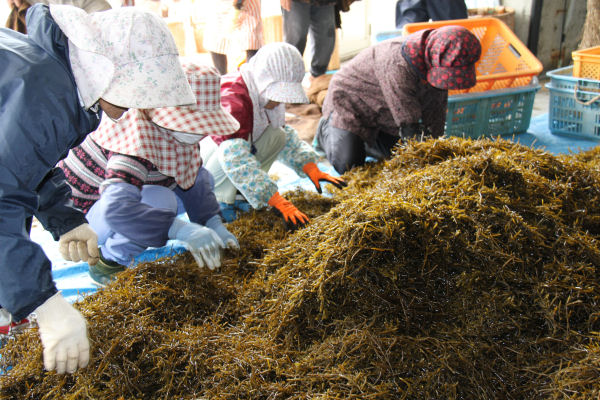 - 雲見では、ヒジキ刈りが行われました。港では刈り取ったヒジキを集め、計量などの作業が行われていました。