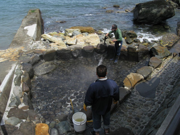 - 雲見で、渚の足湯と赤井浜露天風呂の清掃作業が行われました。明日から利用できますので、ぜひお立ち寄りください。