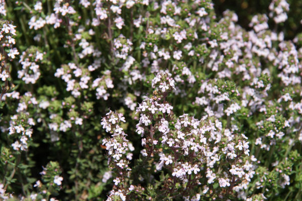- ハーブ実証栽培事業の畑では、34種類植えたハーブの内の一つ「コモンタイム」が小さな可愛らしい花をたくさん咲かせていました。