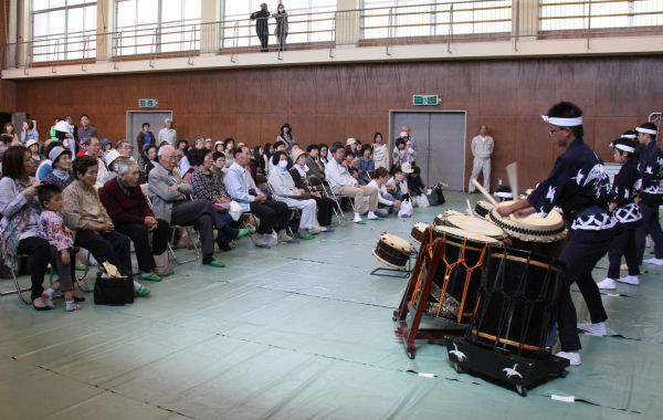 - 天候にも恵まれ、重要文化財岩科学校周辺では「第28回岩科重文まつり」が盛大に開催されました。旧岩科小体育館では、式典の他、松崎高吹奏楽部の演奏や牛原太鼓などの芸能が披露されました。