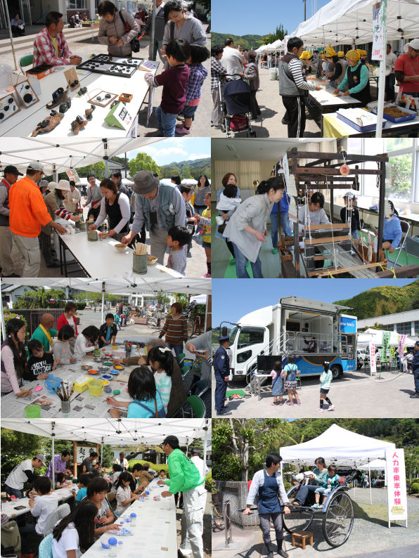 - 岩科重文まつりでは、無料の猪ちゃんこの他、峰焼きや八木山の炭マスコットなど、岩科ならではの品物も多く販売されました。機織りや石絵などの体験コーナーも、たくさんのお客様で賑わいました。