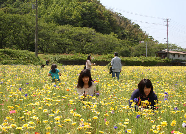 - 那賀の田んぼをつかった花畑は、今日から5日まで、花摘みに無料開放されています。花は、ハサミなどで根元から切るようにして摘み、土を持ち帰るような摘み方はしないでください。