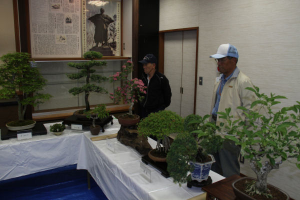 - 「道の駅」花の三聖苑内にある三聖会堂では、今日から松崎町文化協会の会員の方による盆栽展が開催されています。期間は4日(土)までです。ハーブ湯と合わせ、ぜひ、盆栽展にもお立ち寄りください。