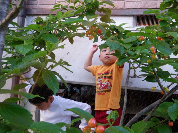 - 町内にあるお宅では、サクランボが例年より早く赤らみ、子供たちが甘酸っぱい味を楽しんでいます。